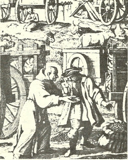 Su confesor le recomienda que ayude a las hermanas clarisas que estaban pasando miseria. En el año 1573, cuando contaba con 70 años de edad, les cede a las clarisas sus bienes, que ascendían a unos 20,000 pesos, quedándose solo con 1000 pesos como le pidió su confesor por precaución por si no perseveraba. Se va el mismo a servirles en calidad de portero y criado.
