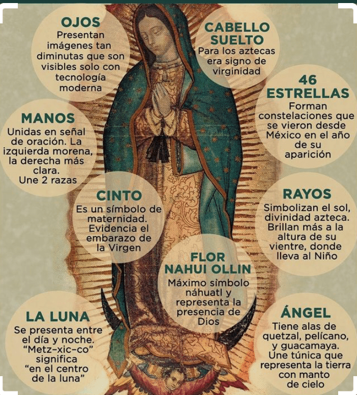 Las estrellas visibles en el Manto de María reflejan la exacta configuración y posición que el cielo de México presentaba en el día en que se produjo el milagro.