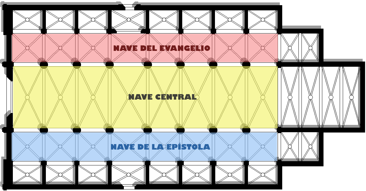 El término nave (del latín navis ‘barco’ o del griego antiguo ναός «naós», «templo, naos»), denomina al espacio comprendido entre dos muros o filas de columnas (arcadas).