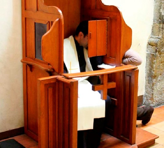 El confesionario es un pequeño recinto aislado dentro de la iglesia, generalmente de madera, que sirve para administrar el sacramento de la reconciliación. Se divide en dos sectores, muchas veces conectados por una ventanilla; de un lado el sacerdote escucha la confesión del fiel que se acerca al sacramento.